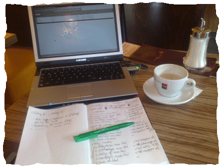 | Aus dem Inhalt: Du kannst einen Punkt aus dem Inhalt anklicken, oder einfach nach unten scrollen. 1. Warum eine eigene Website? 2. Wenn schon eine Website, dann aber kein Standard! 3. Den Sandro ins Boot holen. 4. Die Entstehung des Layouts. 5. Das Beispiel 'bring the camera'. 6. Ich arbeite im Georgcafé. 7. Software |